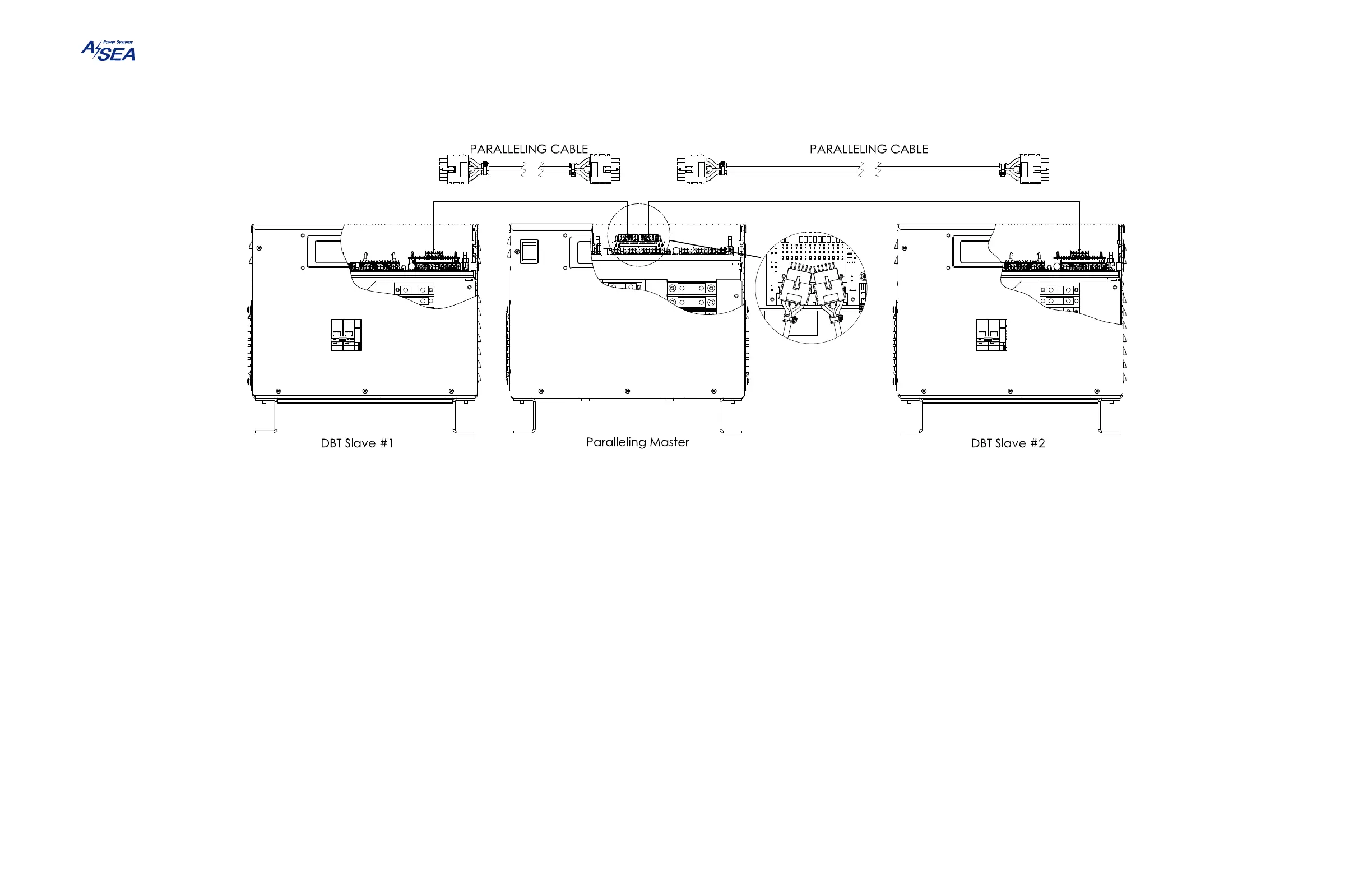 Paralleling cables carry control and status signals between the Paralleling Master and the two Slave DBT units and should be connected according to Figure 19. Trident systems are supplied with two 40' (12.2 m) paralleling