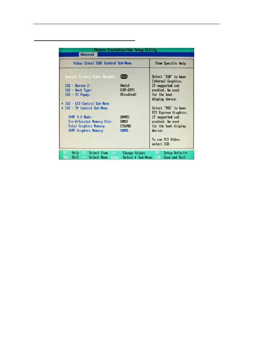 Video (Intel IGD) Control Sub-Menu