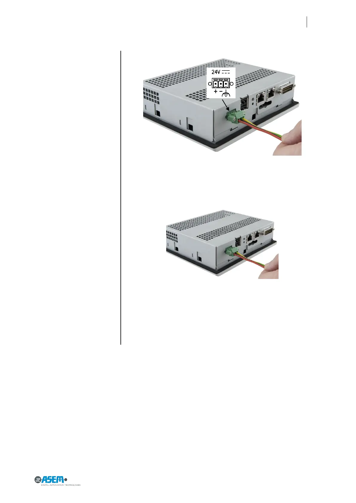 Connect the power supply cable to HMI30. Switch On the power supply. The