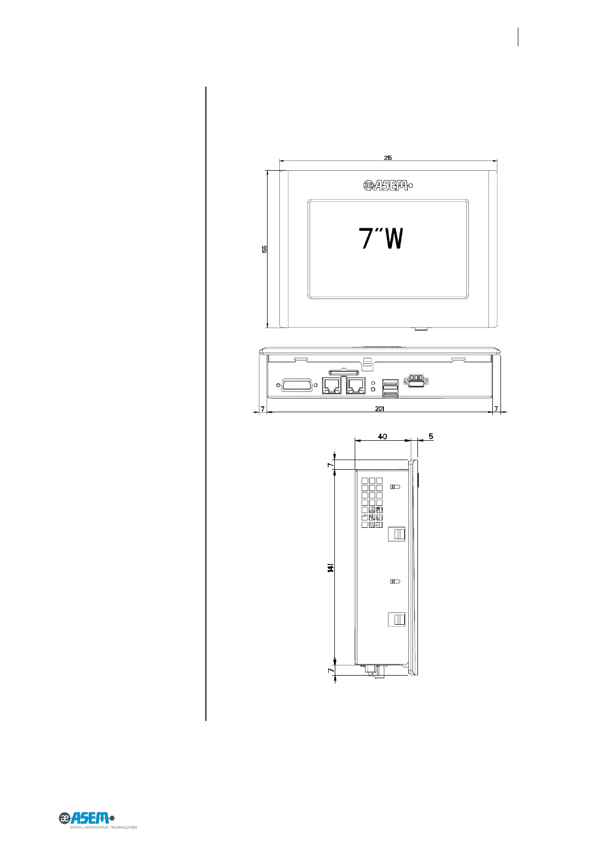 ASEM HMI30 - HMI30 7.0 (Wide Full Aluminium Front Panel); Figure 85 HMI30 7.0 Front View; Figure 86 HMI30 7.0 Bottom View; Figure 87 HMI30 7.0 Side View