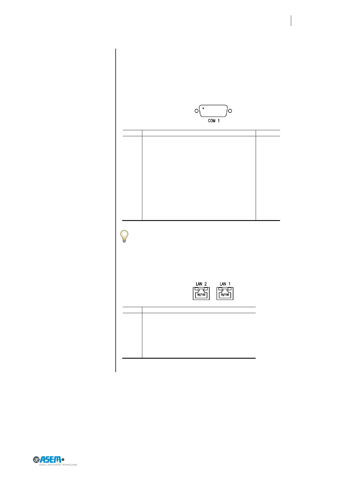 ASEM HMI30 - Ports PINOUT; COM1 - DB15 M Serial; Lan1 - Lan2; Table 41 COM1 - DB15 M Serial