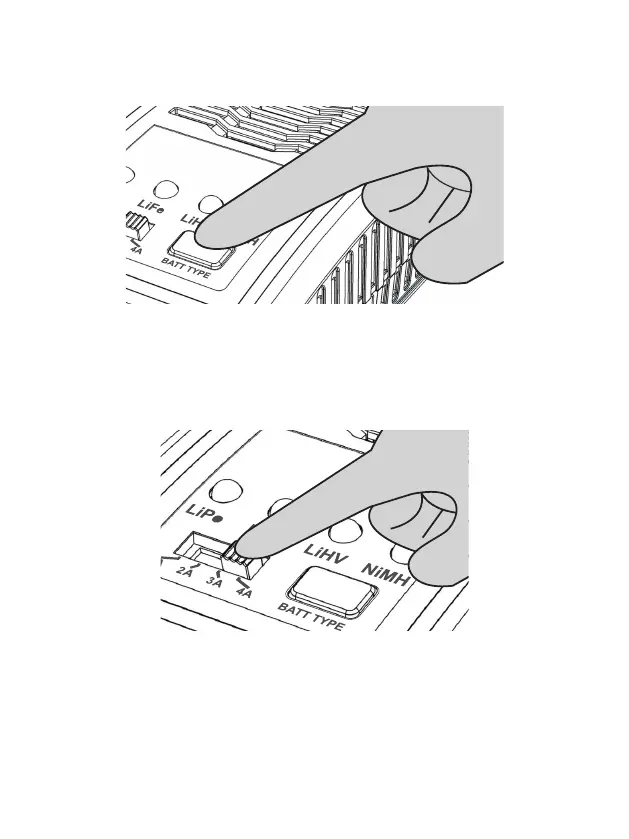 Sélectionnez le type de batterie LiPo/ LiFe/ LiHV/ NiMH en appuyant sur le bouton “BATT
