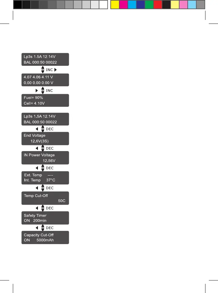 Appuyez sur INC ou DEC pendant le processus de charge ou décharge pour visualiser d'autres