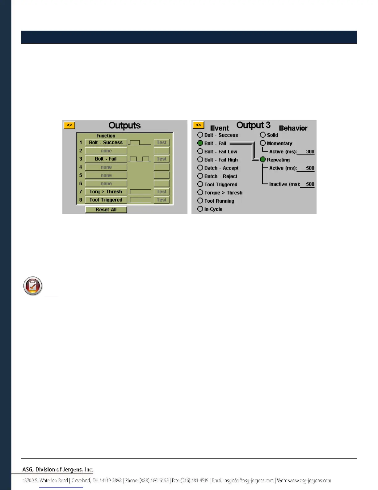 Note: Back on the ‘Outputs’ screen, you will have the opportunity to test the output signal to your device by