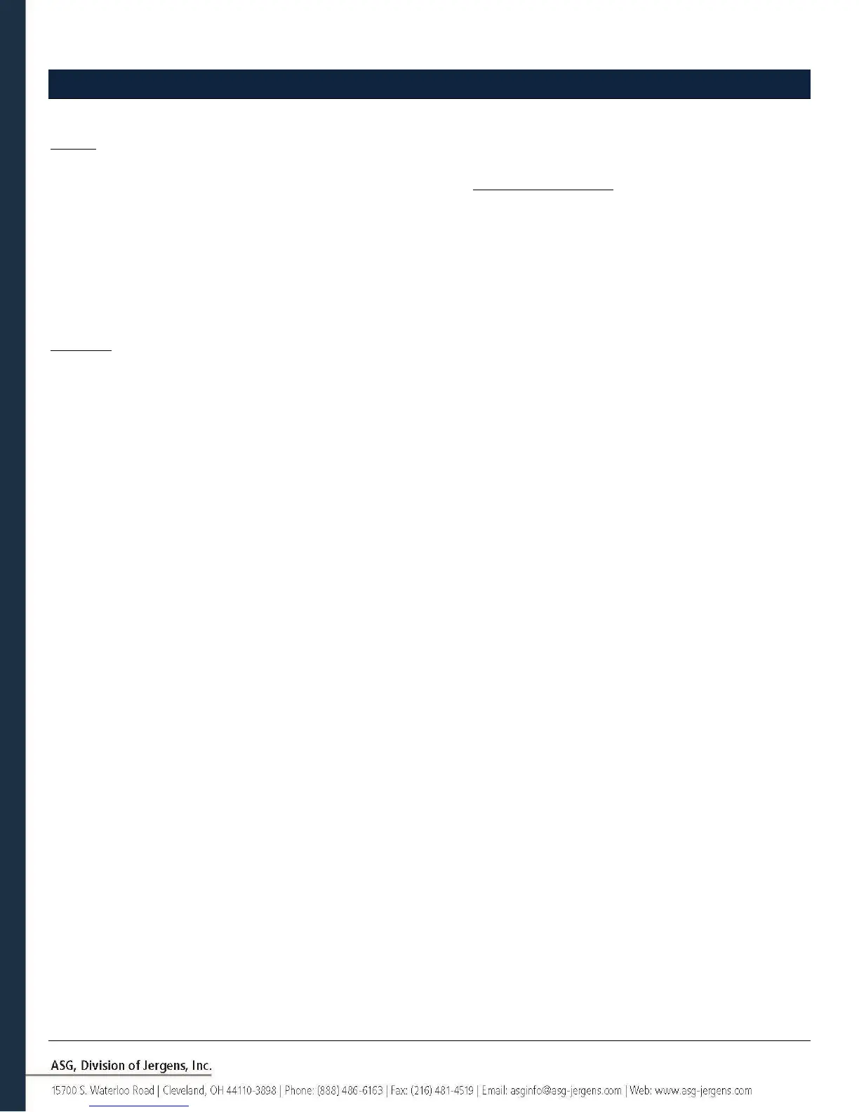 shipping an item for repair. Call us at (888) 486-6163 or email us at info@asg-jergens.com