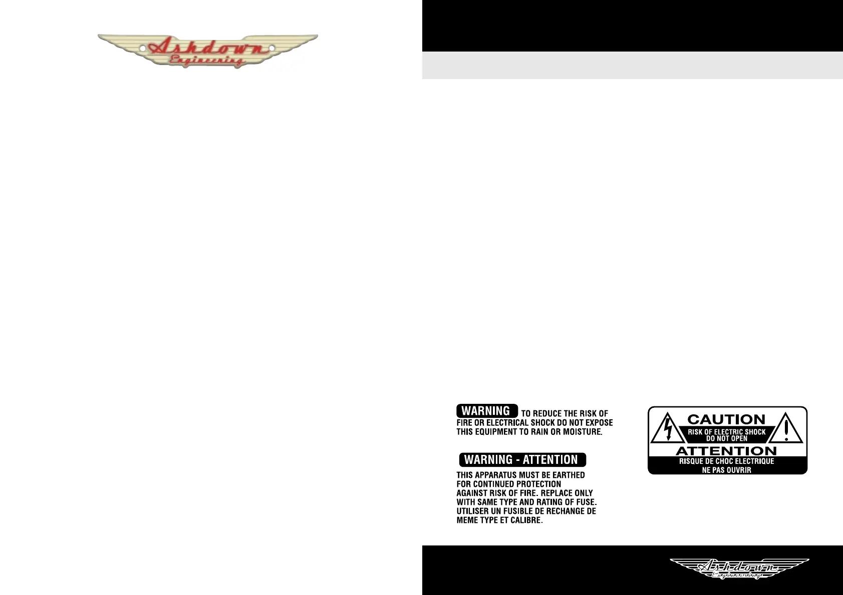 Thank you for purchasing your Ashdown Engineering Amplifier. If you live in the UK, please register