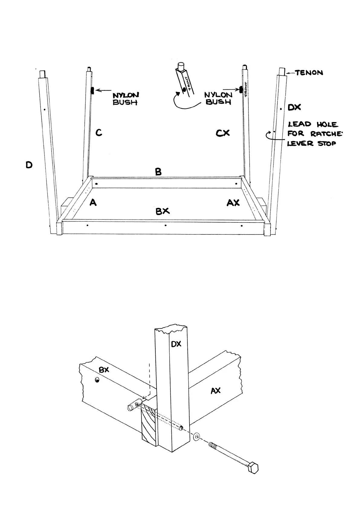 Nylon bushes in parts C and CX are on the inside.