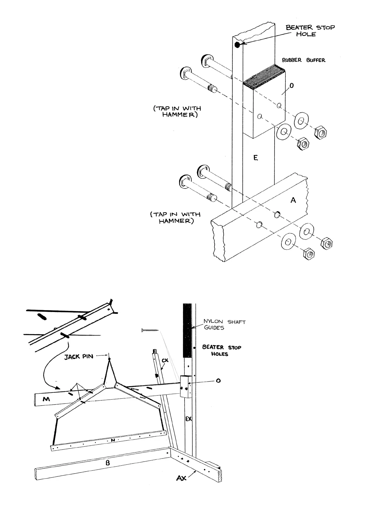 the frame and holes for the beater stops