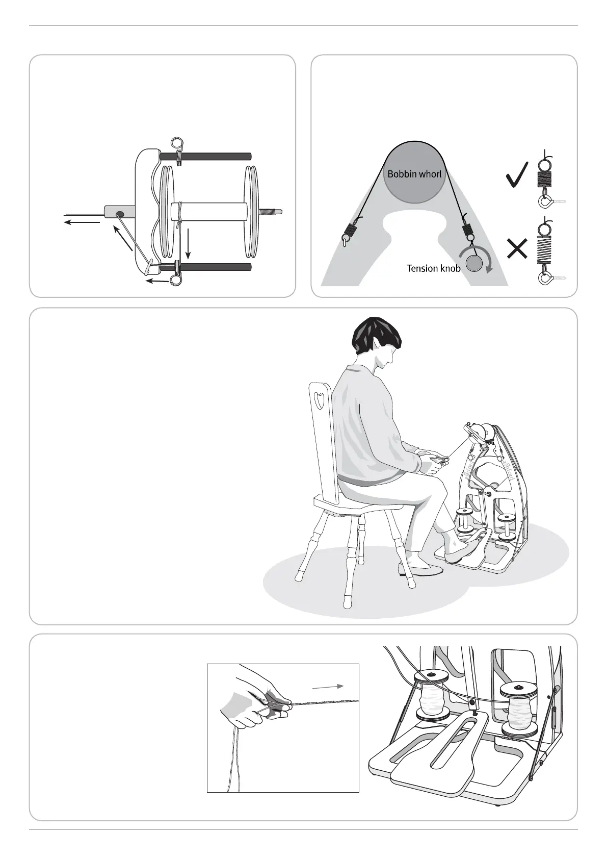 Now you are spinning singles. Treadle slowly.