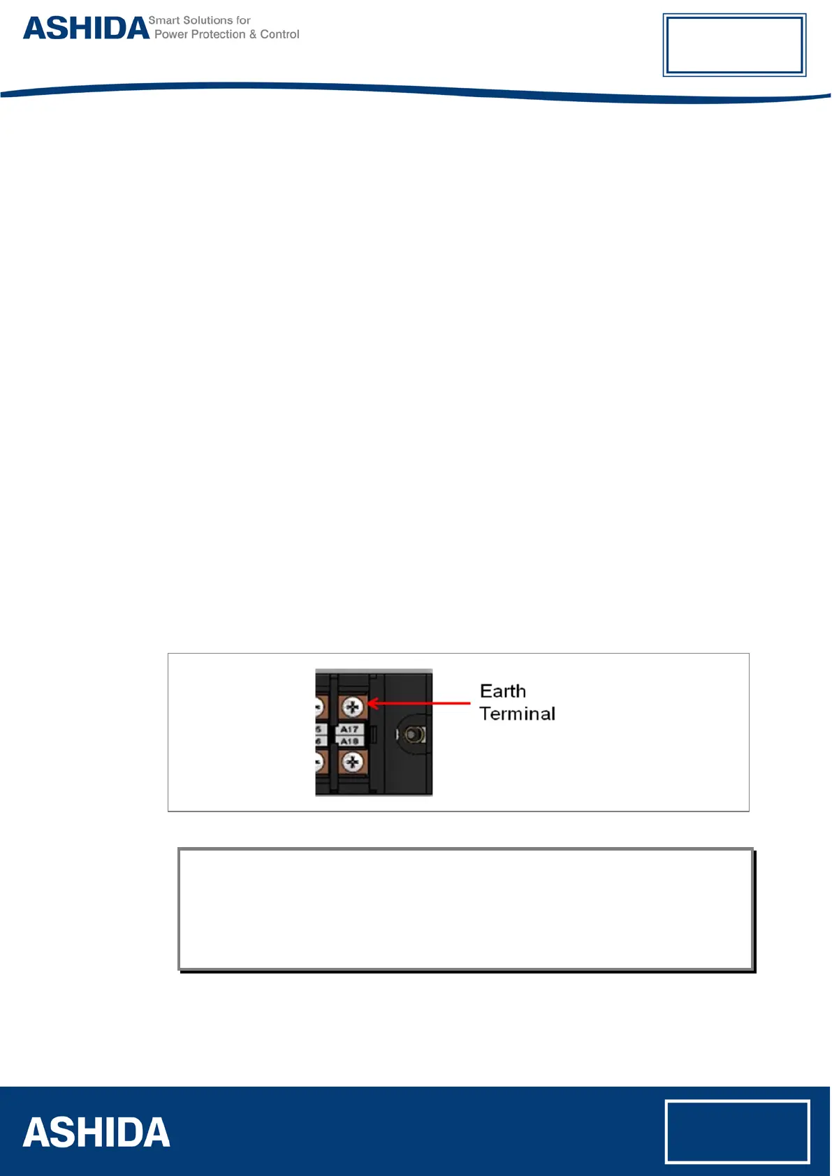 back side of the relay. Ensure that the relay earthing is connected to the local earth bar. With