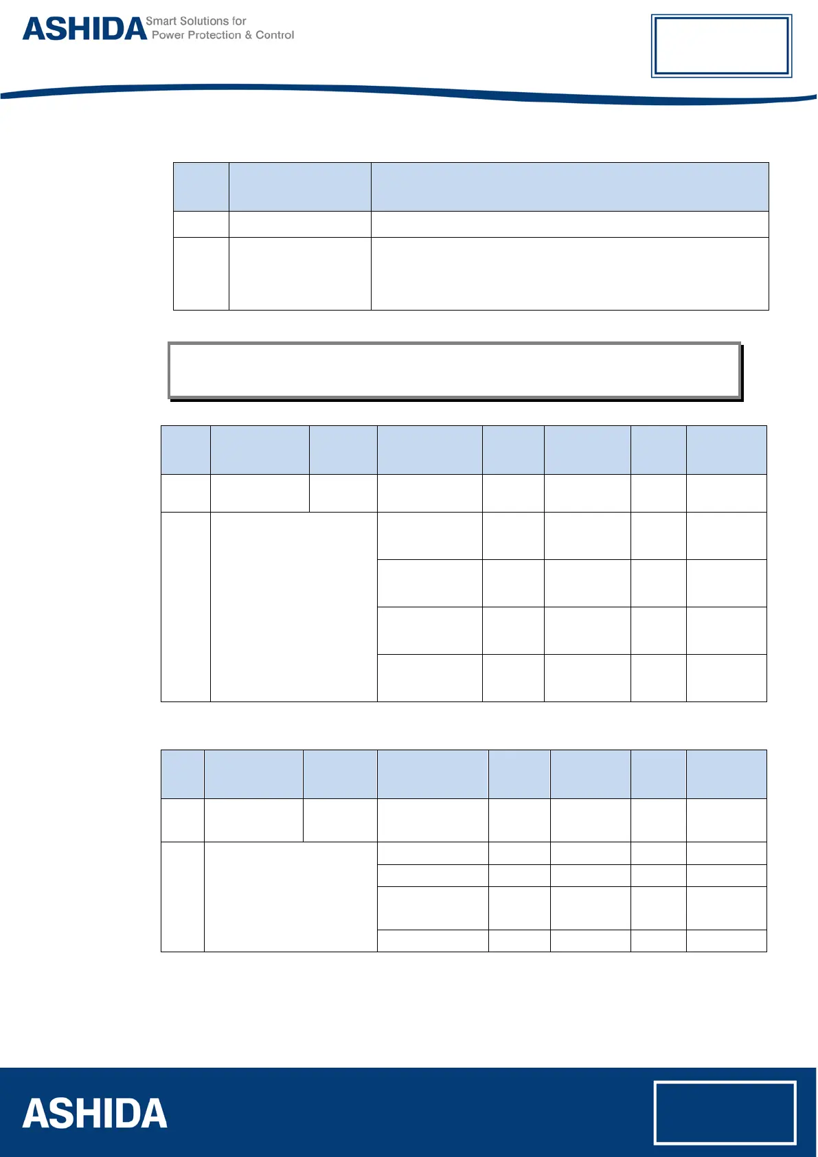 NOTE: The addresses of the MODBUS registers start from 1 and the user may have to subtract 1