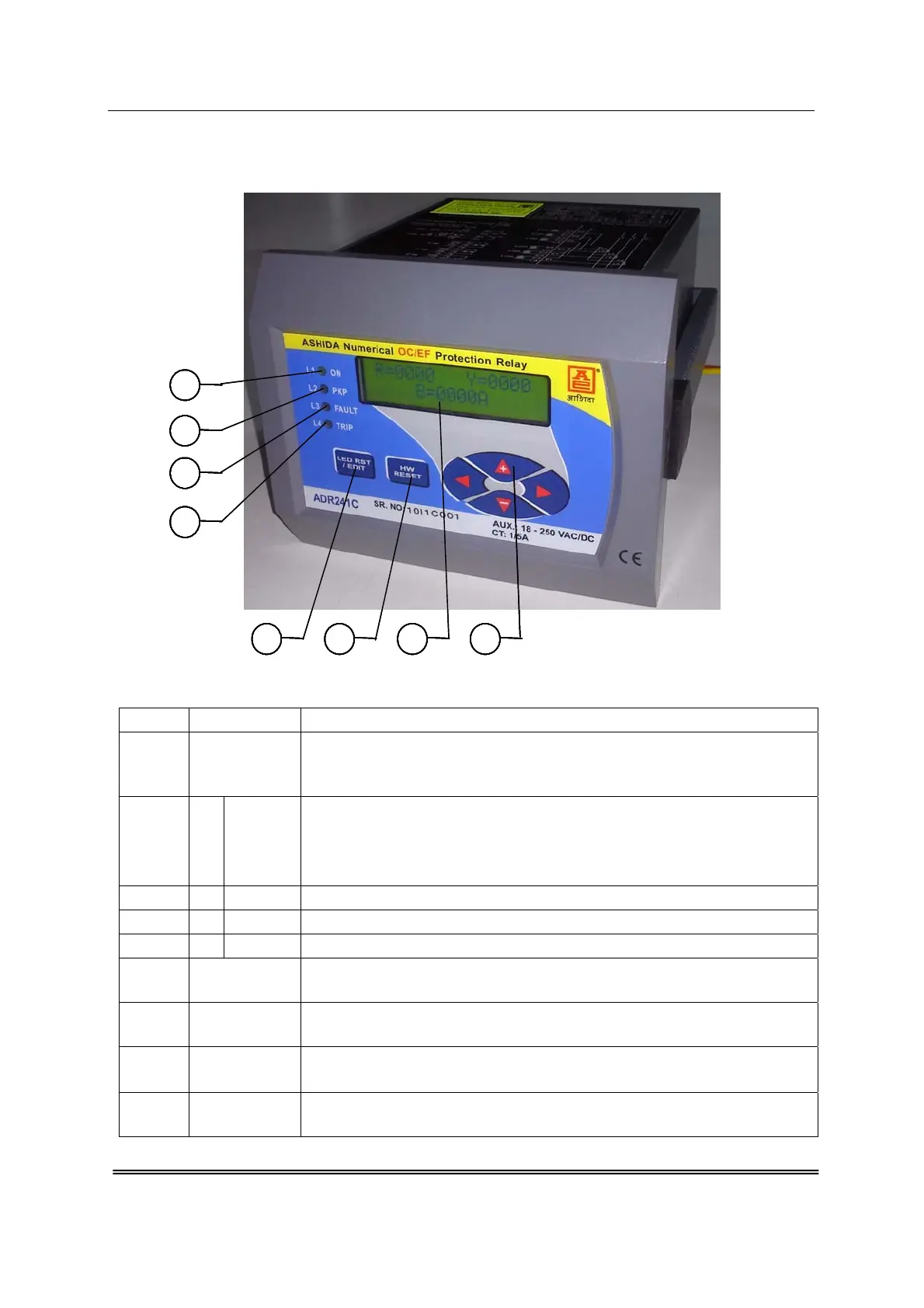 : Red LED indicate Relay Operated Flag (HR)