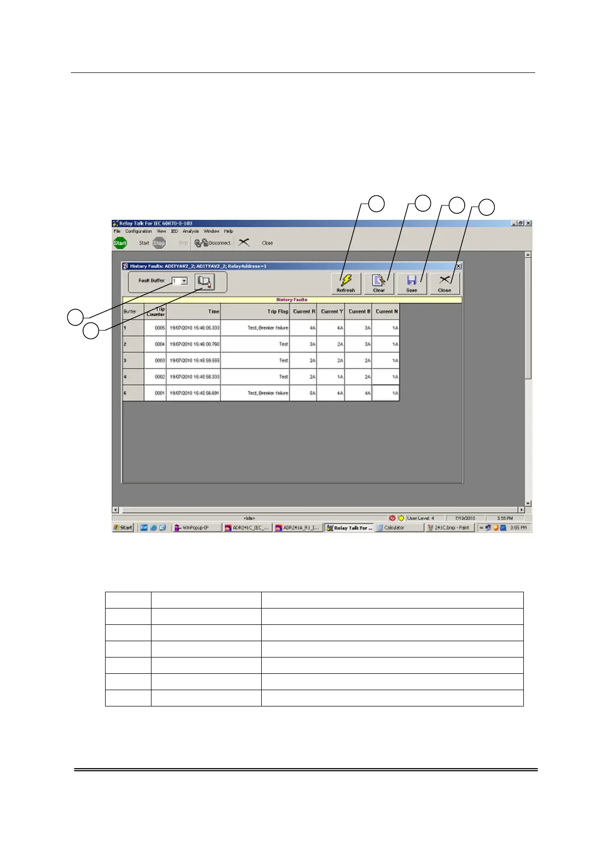 This window shows last 5 Fault events i.e. Trip Counter, Date & Time of the Faults, Type of