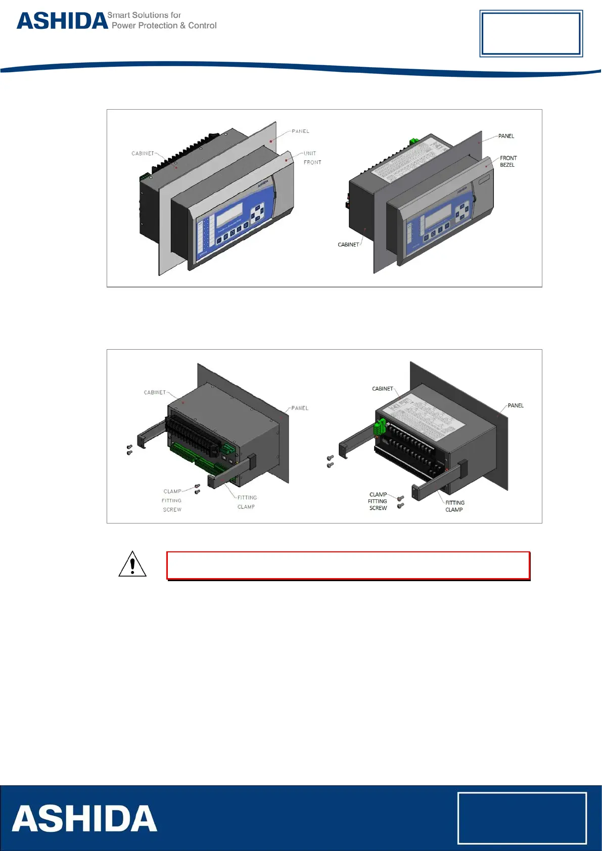 After inserting the Relay in the Panel using the Fitting clamps, M5 x 10 Screws are used to