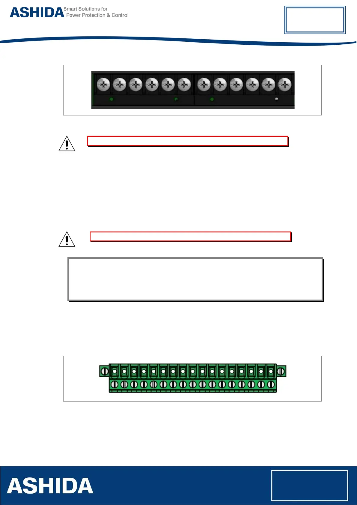 Note 1: Terminal blocks must not be detached whilst any current transformer (CT) circuit is live. CT