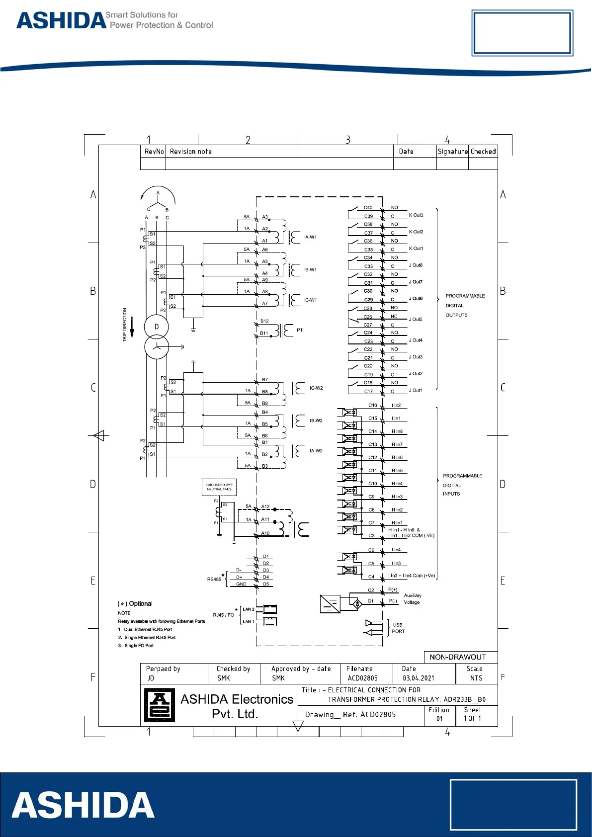 Ashida ADR233B - Electrical Connection Details - Basic Model (Non Draw Out)