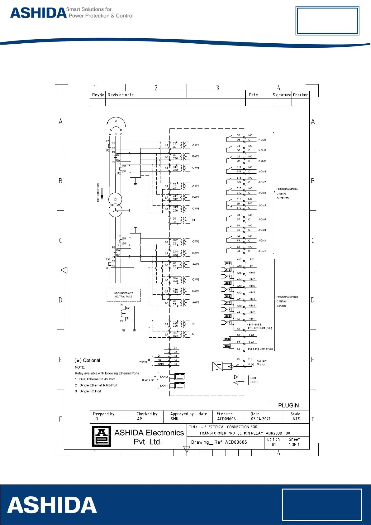 Ashida ADR233B - Electrical Connection Details - Basic Model (Plug-In)