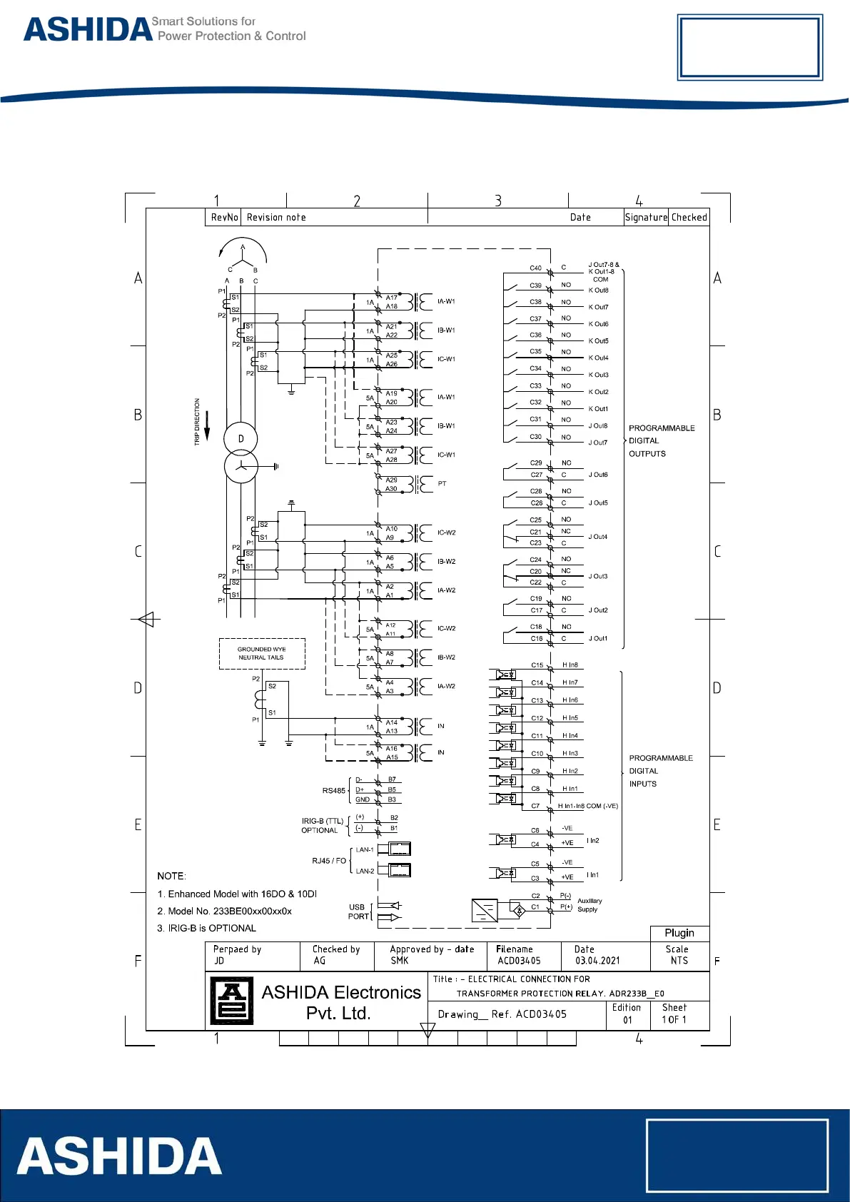 Ashida ADR233B - Electrical Connection Details - Enhanced Model- Plug-In (16 DO&10 DI)