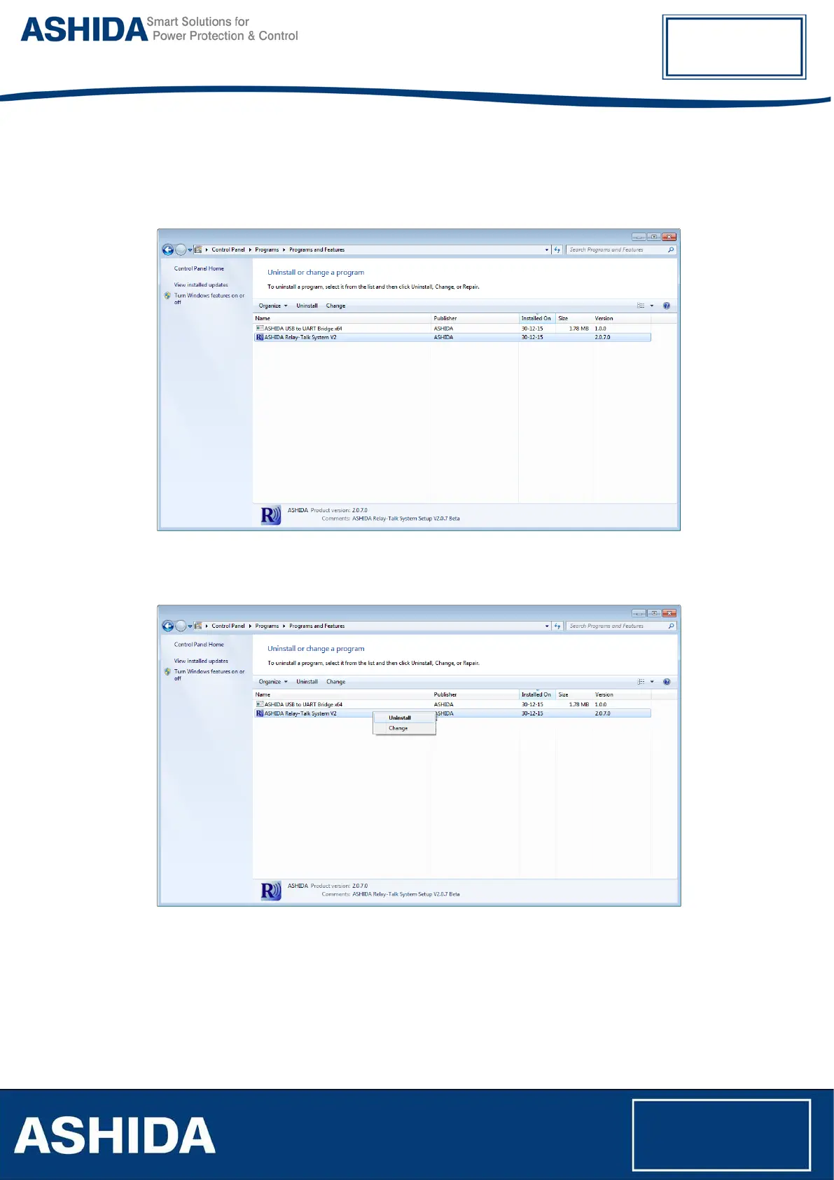 3.2.4 Uninstalling and Repairing ASHIDA Relay-Talk System