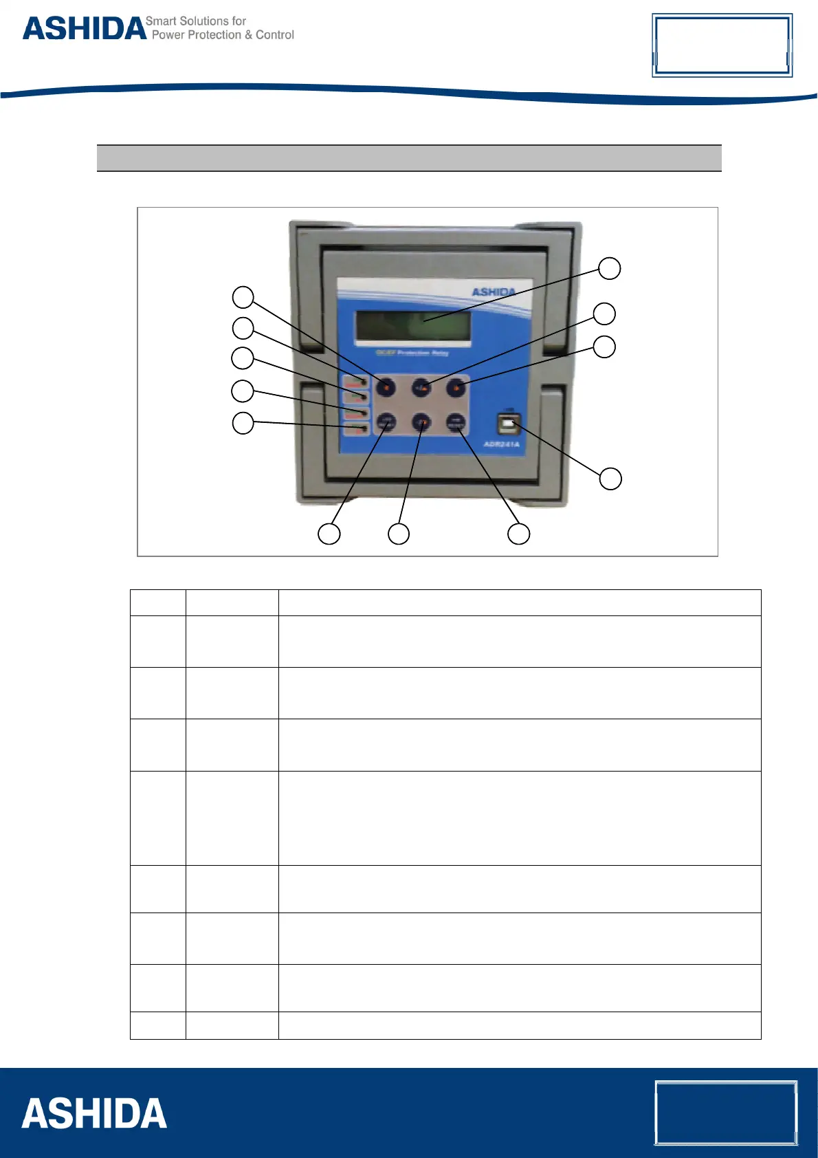 : Red LED indicates the relay tripped by EF. Hand Reset (HR) Type.
