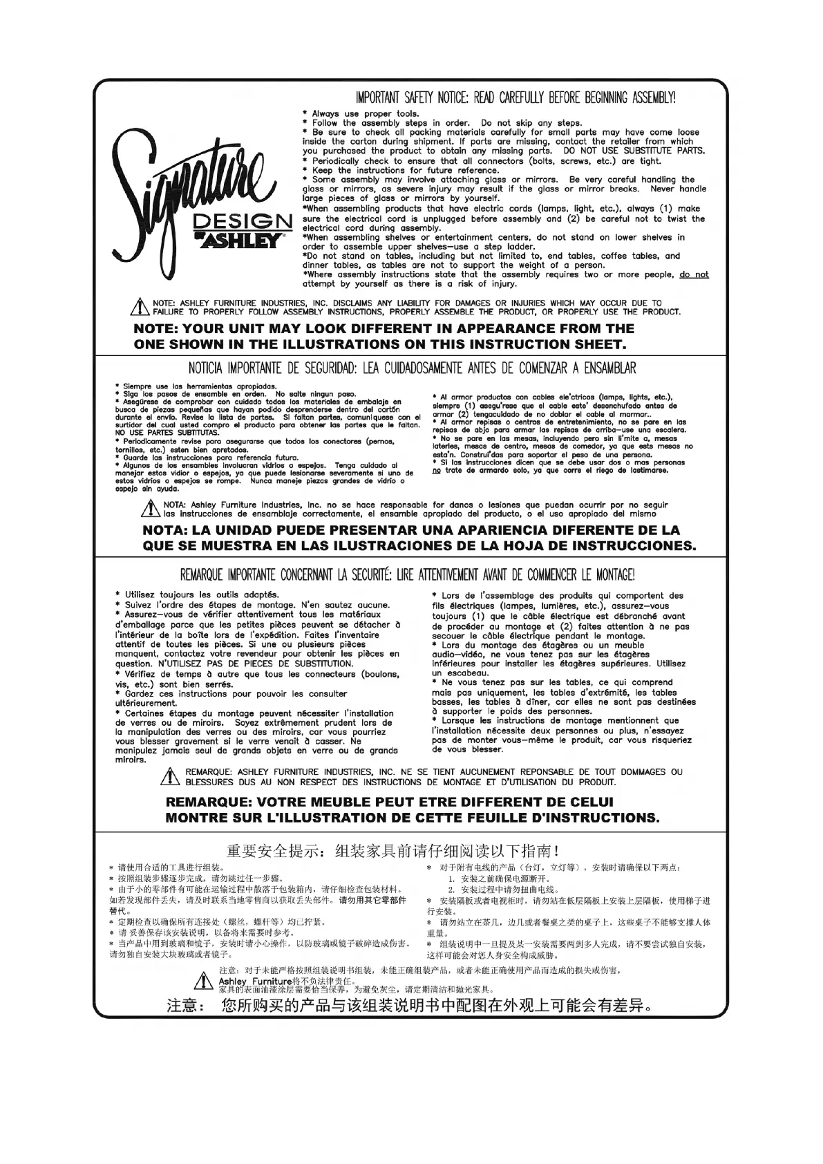 SIGNATURE DESIGN BY ASHLEY® All Rights Reserved. January, 2016 AS-HM-1 Page 2 of 17
