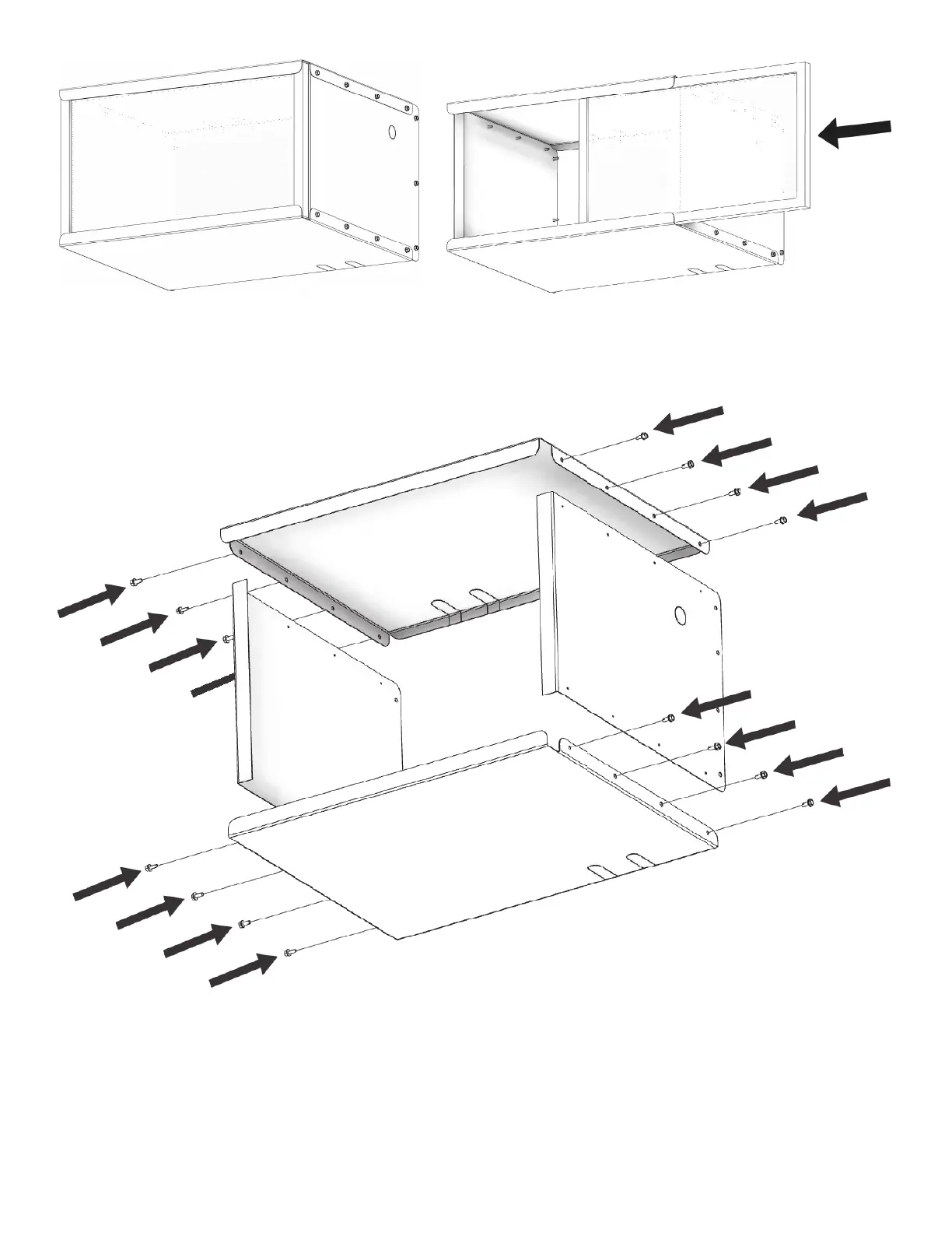 1. Assemblez les côtés du boîtier de ltre, le haut, et le bas en utilisant les seize (16) vis nº 10x1/2 HX.