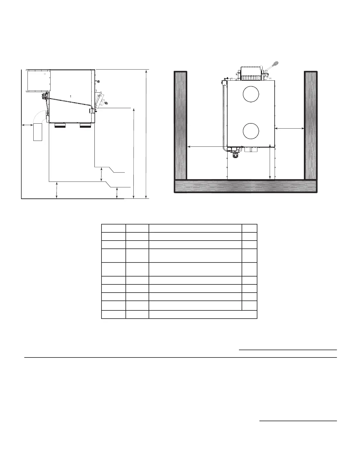 pendant l’installation de la fournaise. Veuillez vous référer au tableau et aux schémas ci-dessous quant aux dégagements