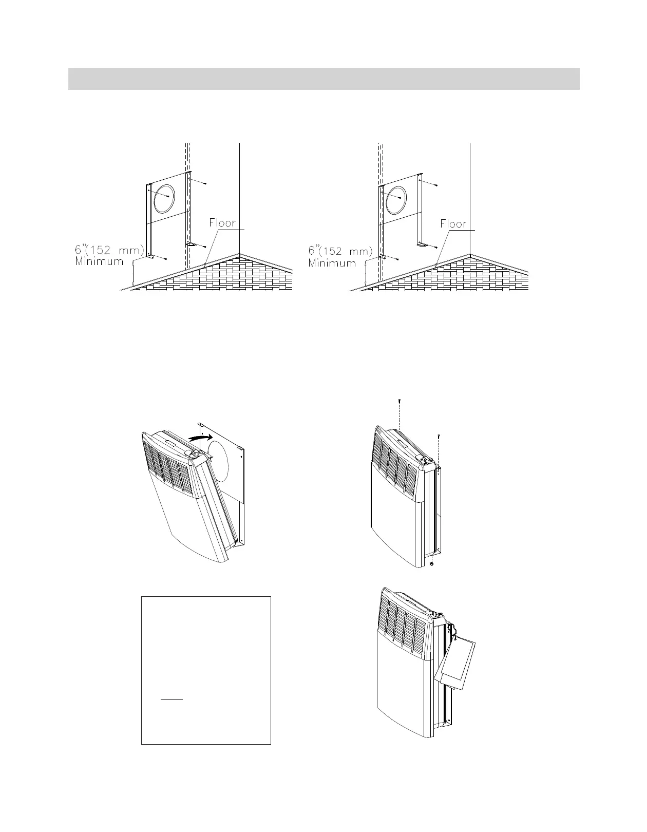 Place the heater on the hanging bracket and fix it with its screws. (See Figure 11 and 12).