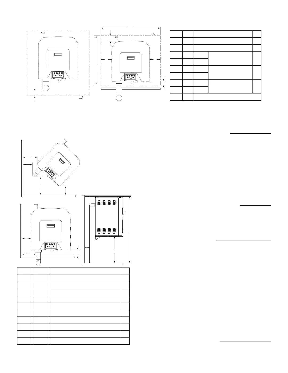 à l’avant, 6 po de chaque côté, 1 po à l’arrière de l’appareil. Sous et 2 po au-delà de chaque côté du té de nettoyage si