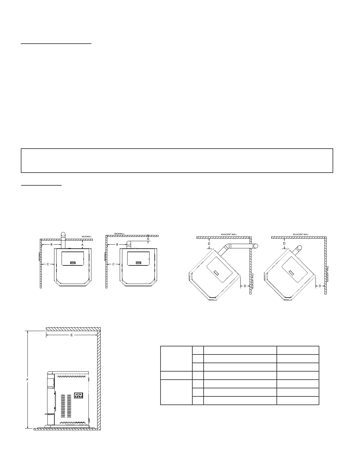 with clearance requirements for a freestanding stove installation.