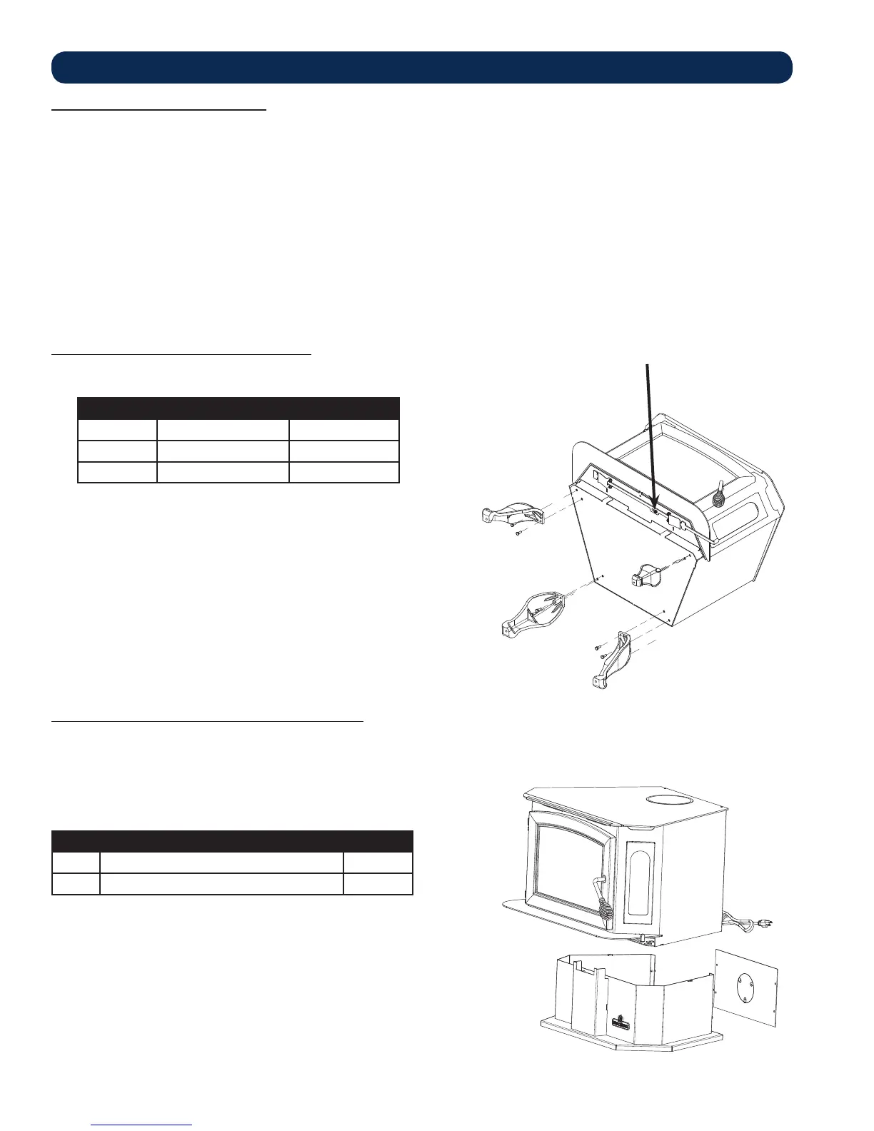 as a freestanding heater on a pedestal,on legs or as a fi replace insert. You must purchase the desired kit separately from your