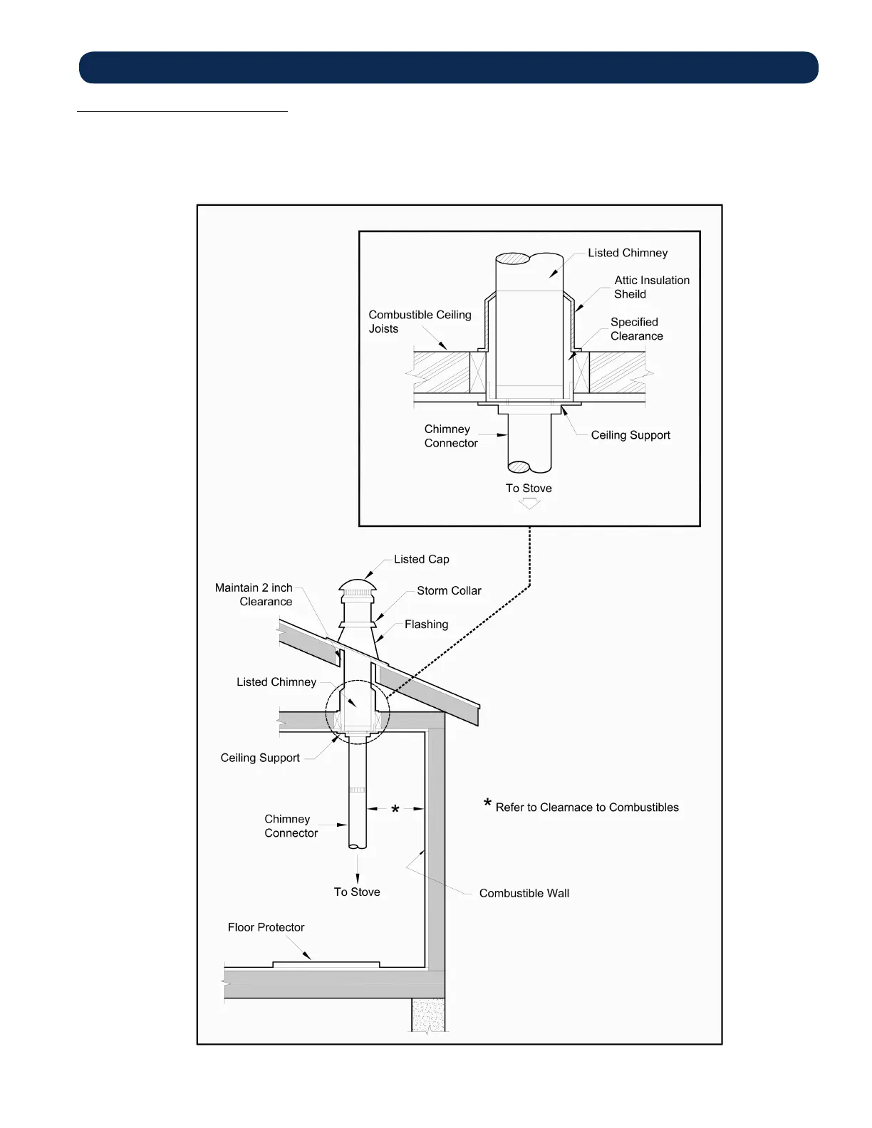 needed), insulation shield, roof ashing, chimney cap, etc. Maintain proper clearance to the structure as recommended by the