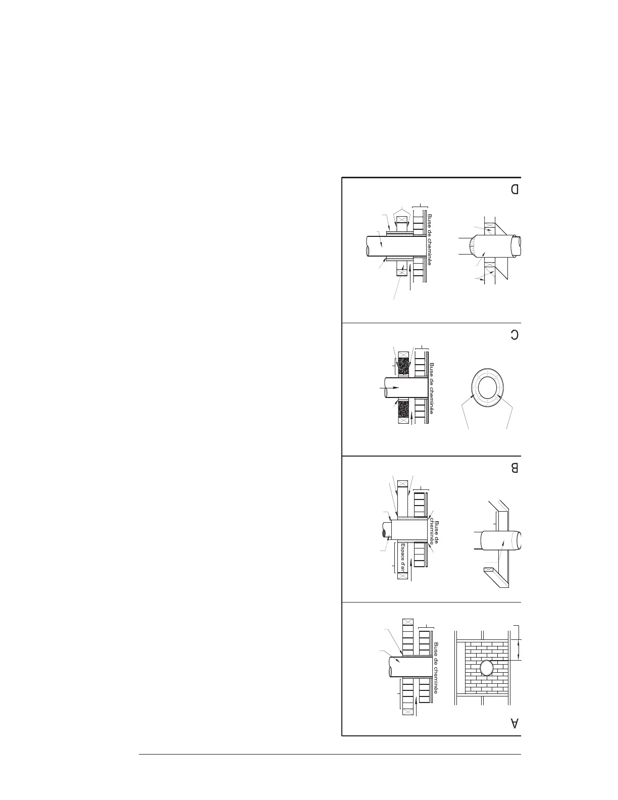 25,4 mm (1 po) ou plus, fabriquez un passage mural avec un espace d’air d’un