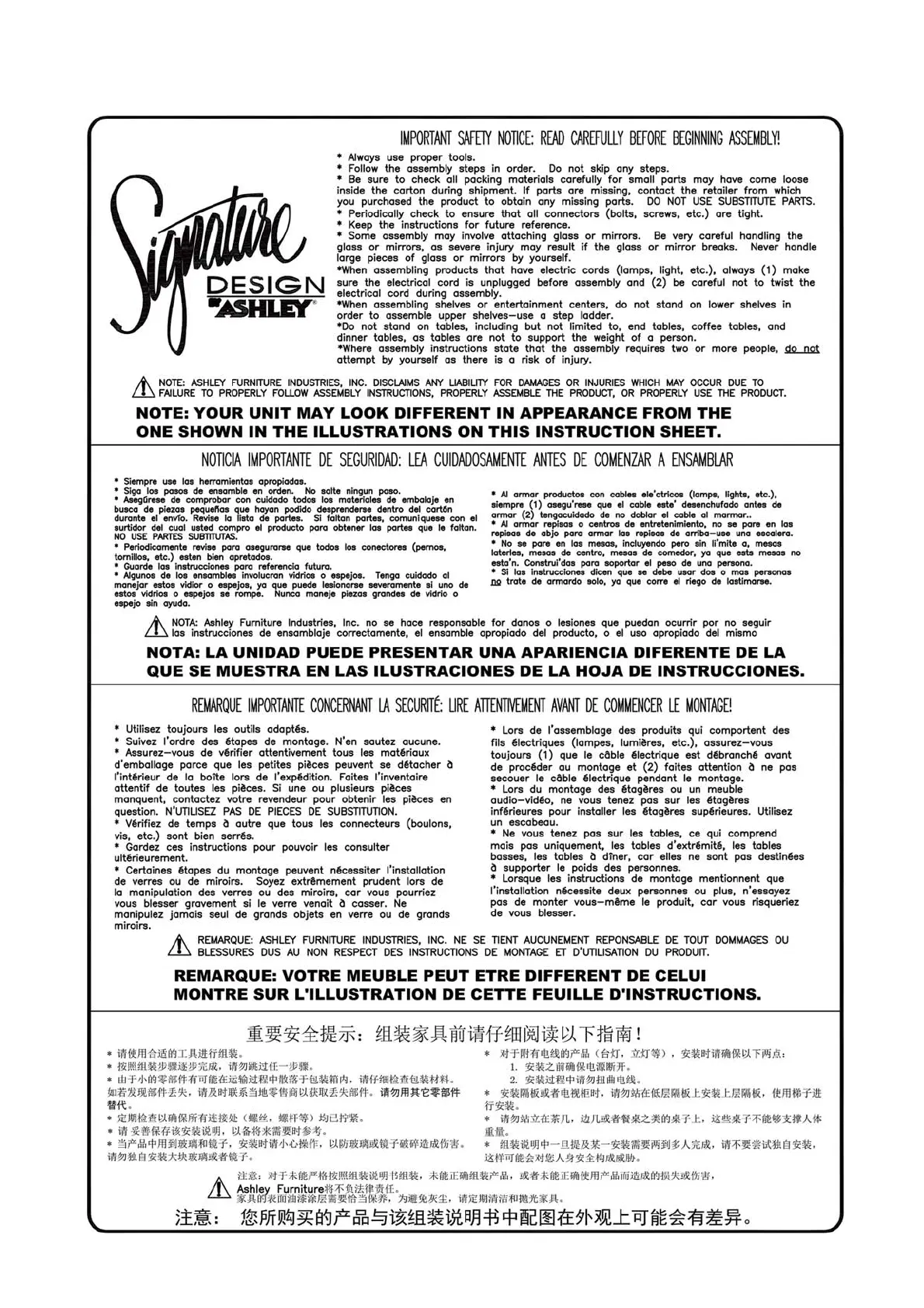 Ashley M9X932 - Important Safety Notice