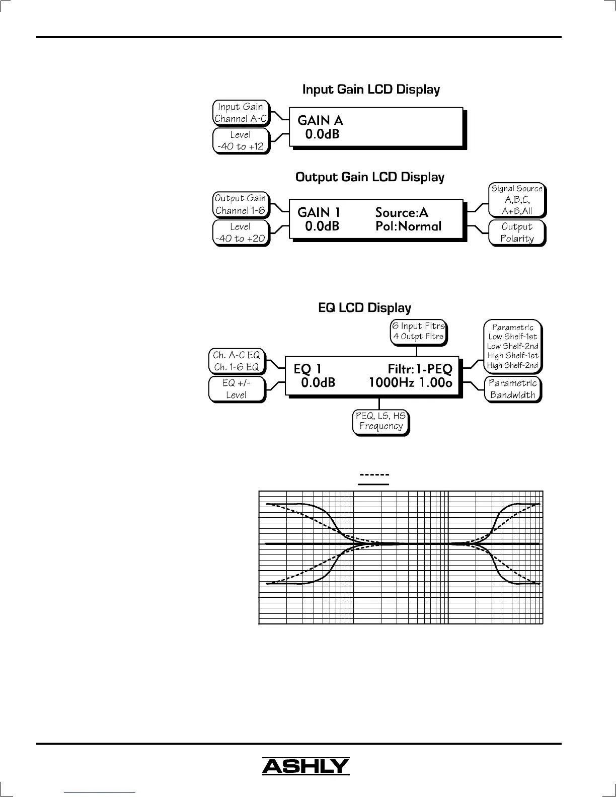 filters have a boost/cut range of +/-15dB. Low