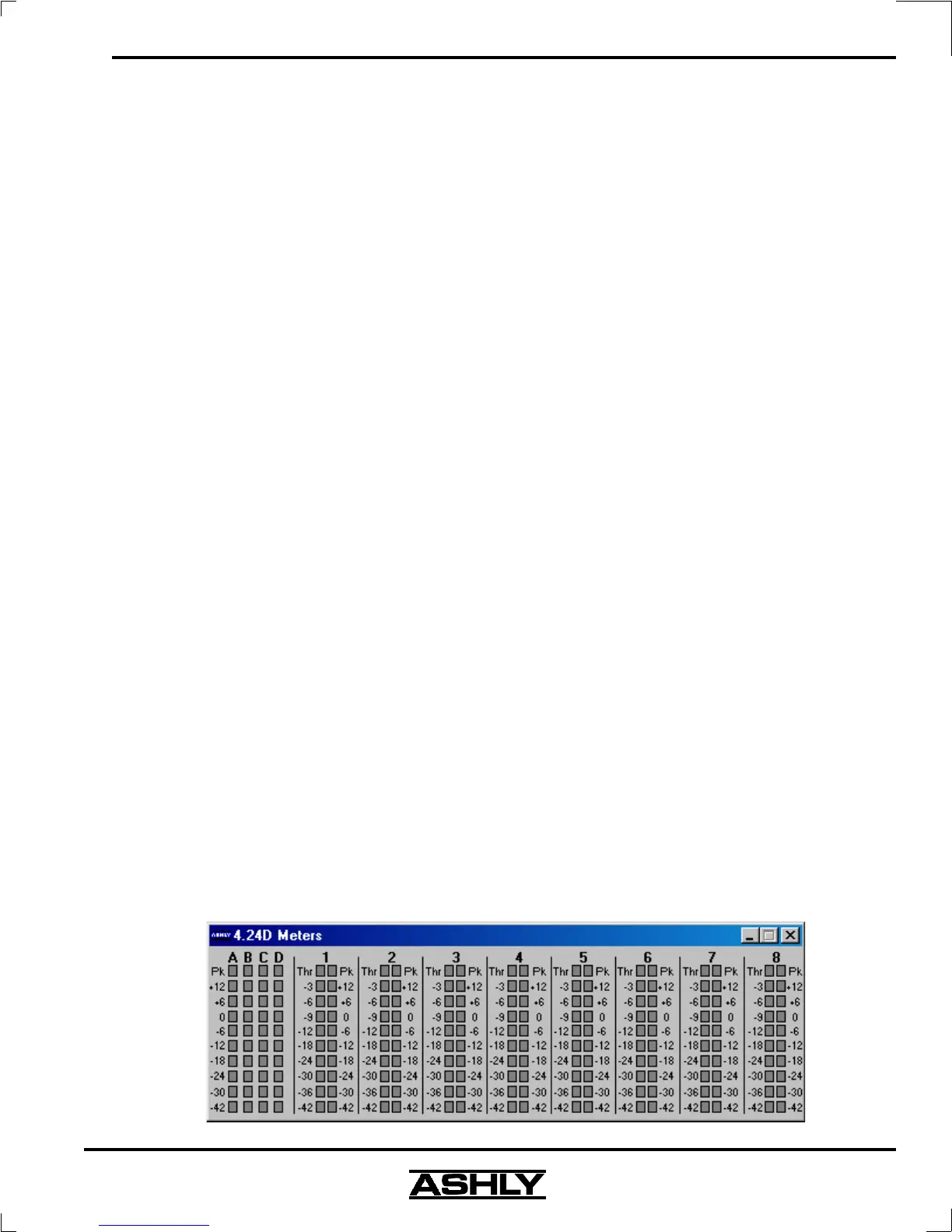 and eight outputs, including gain reduction meters for output limiters. Meters can be set to dBu or VU in the <Op-
