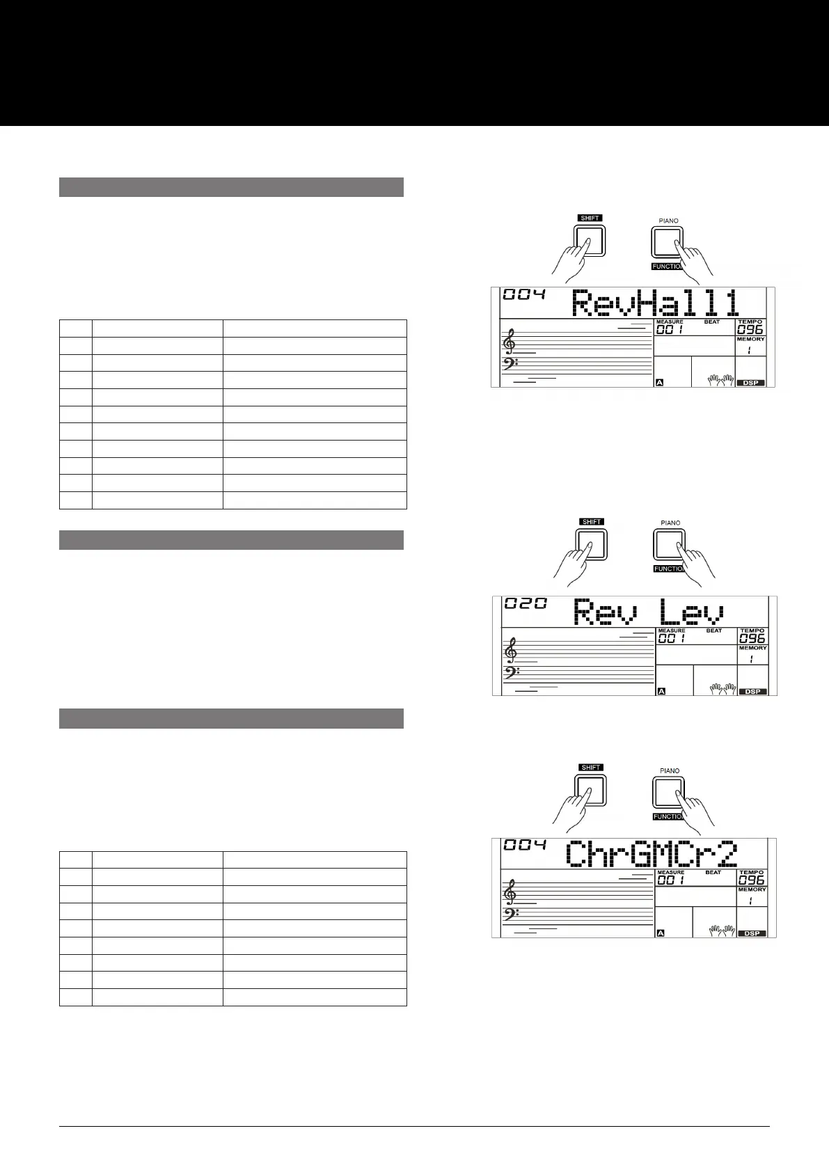 the [FUNCTION] button to select the Reverb Type menu. The
