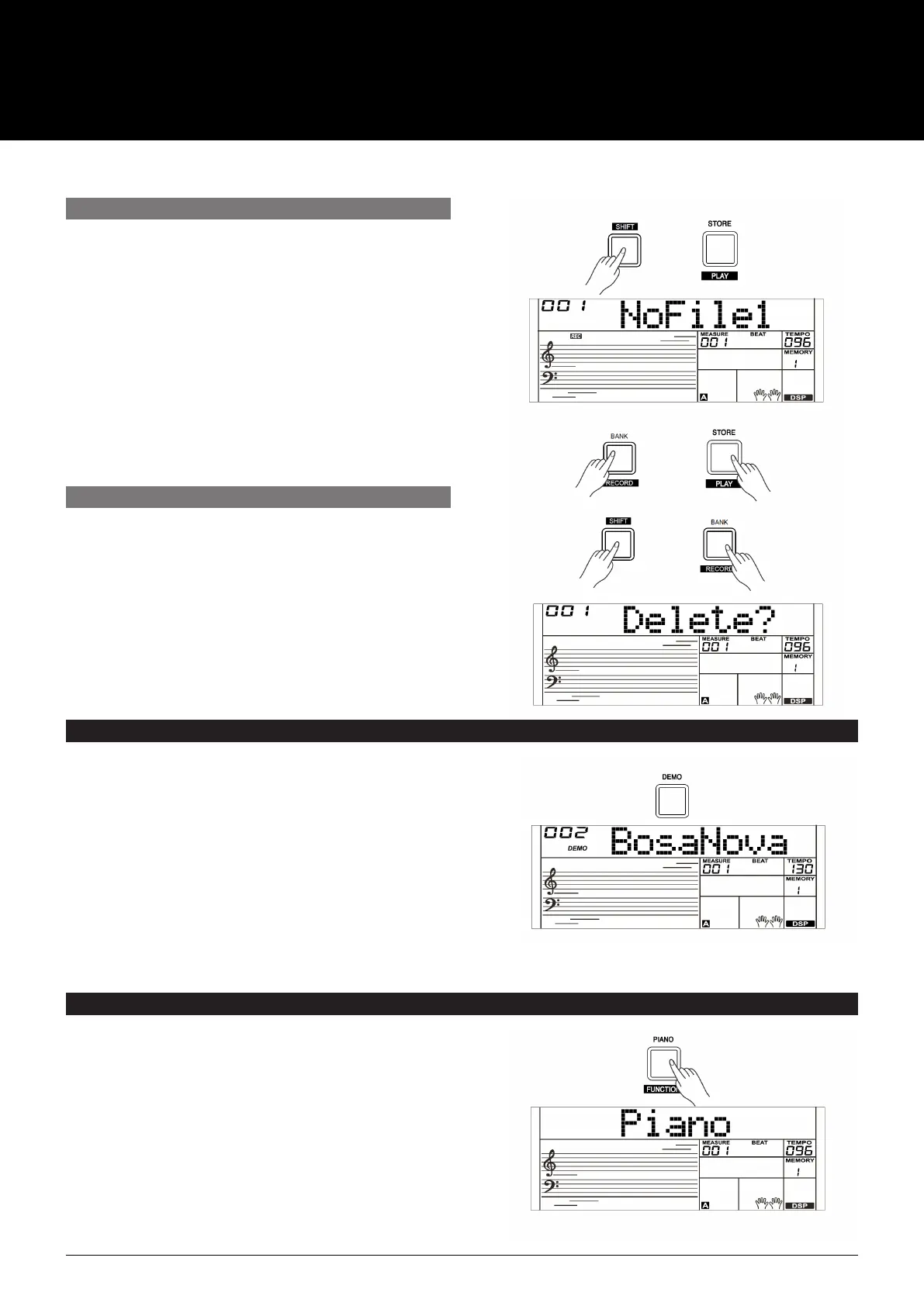“Delete?”. Press the [+/YES] button to delete user song.