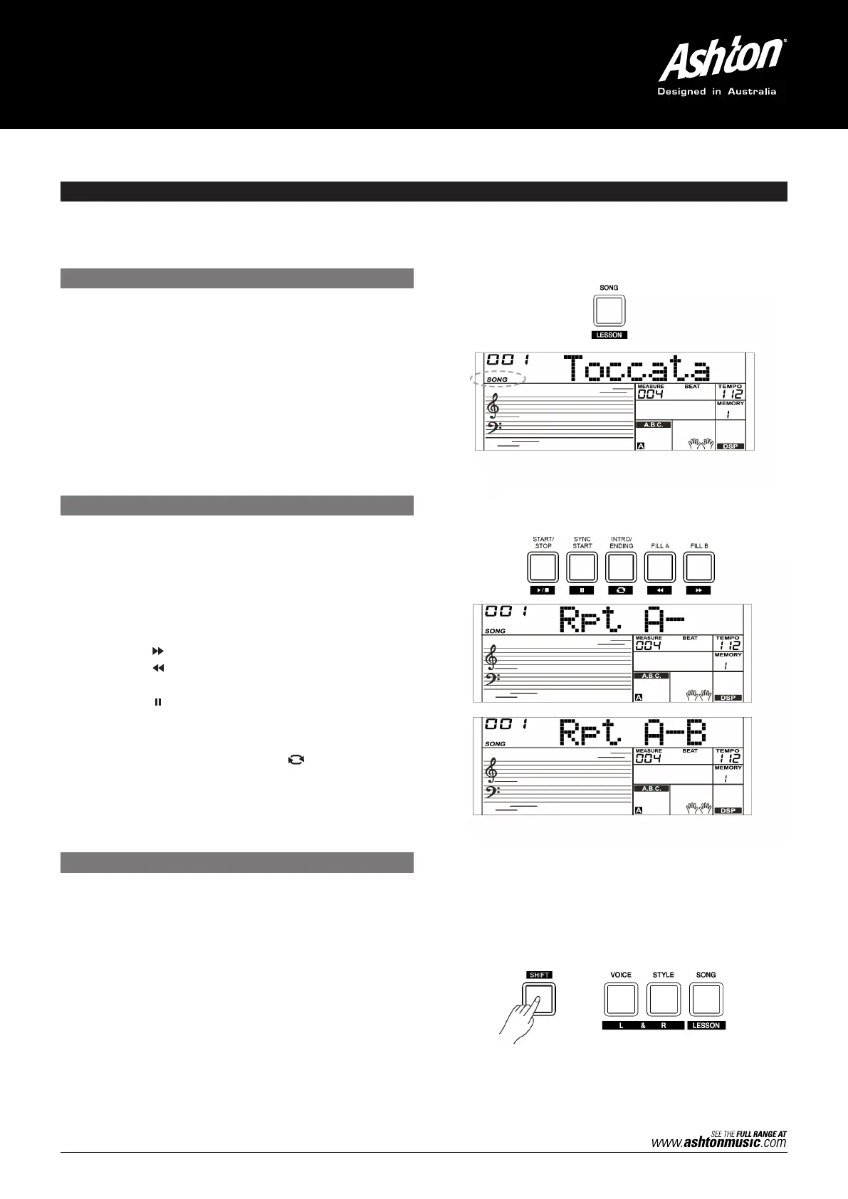 The control buttons in Lesson Mode are: [SHIFT] + [LESSON],