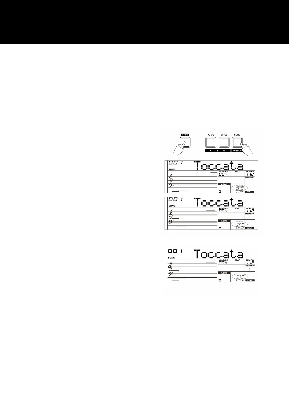 Press the [SHIFT] + [LESSON] button the third time to enter