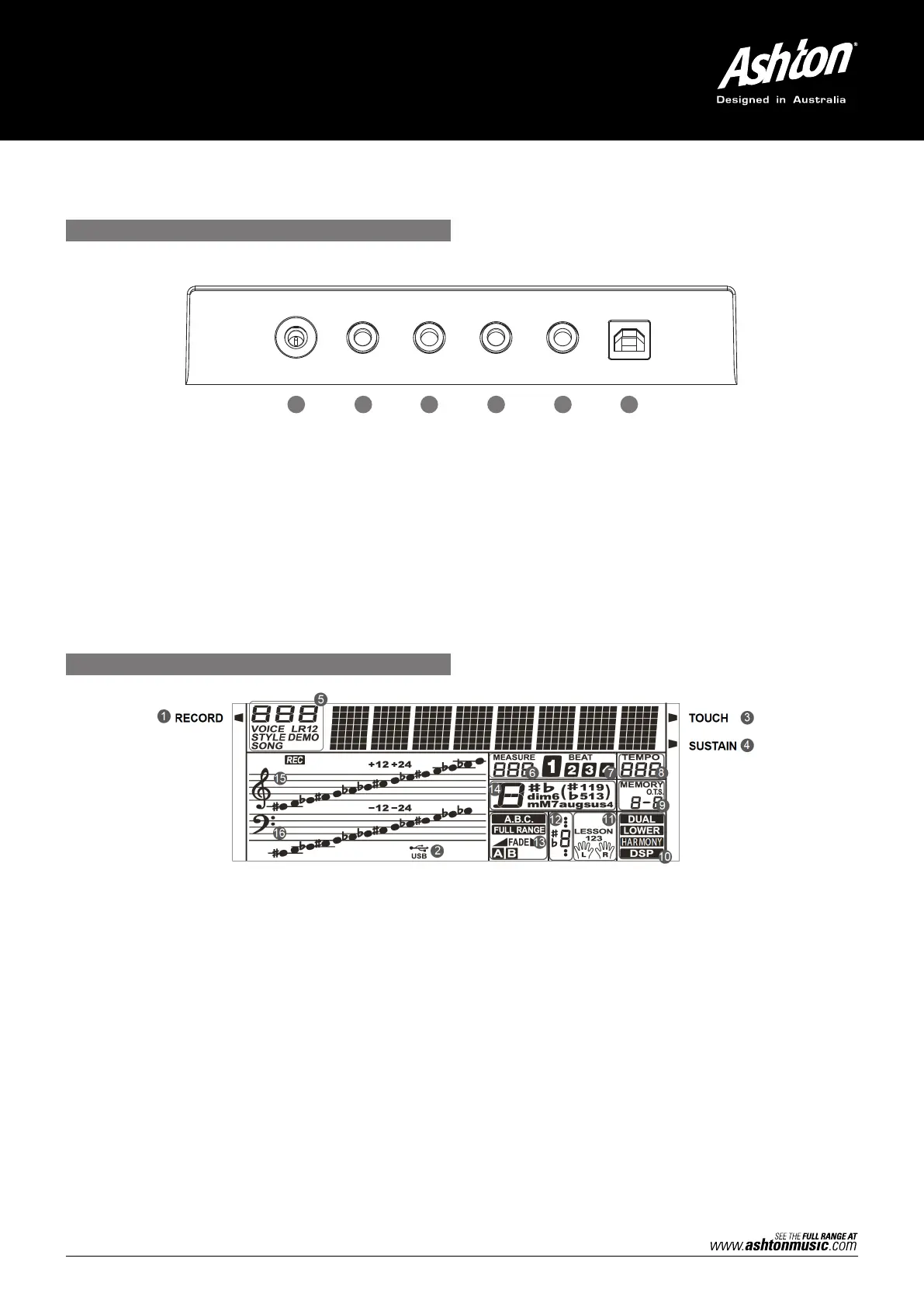 RECORD PLAY DUAL LOWER DICT. DSP TOUCH SUSTAIN FUNCTION OCTAVE TRANSPOSE L & R LESSON
