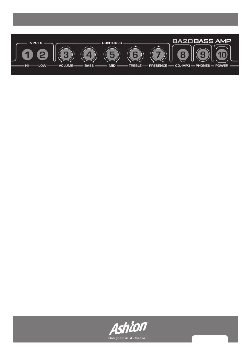 7. Presence: Controls the presence (depth) of the output sound of the amplifier.