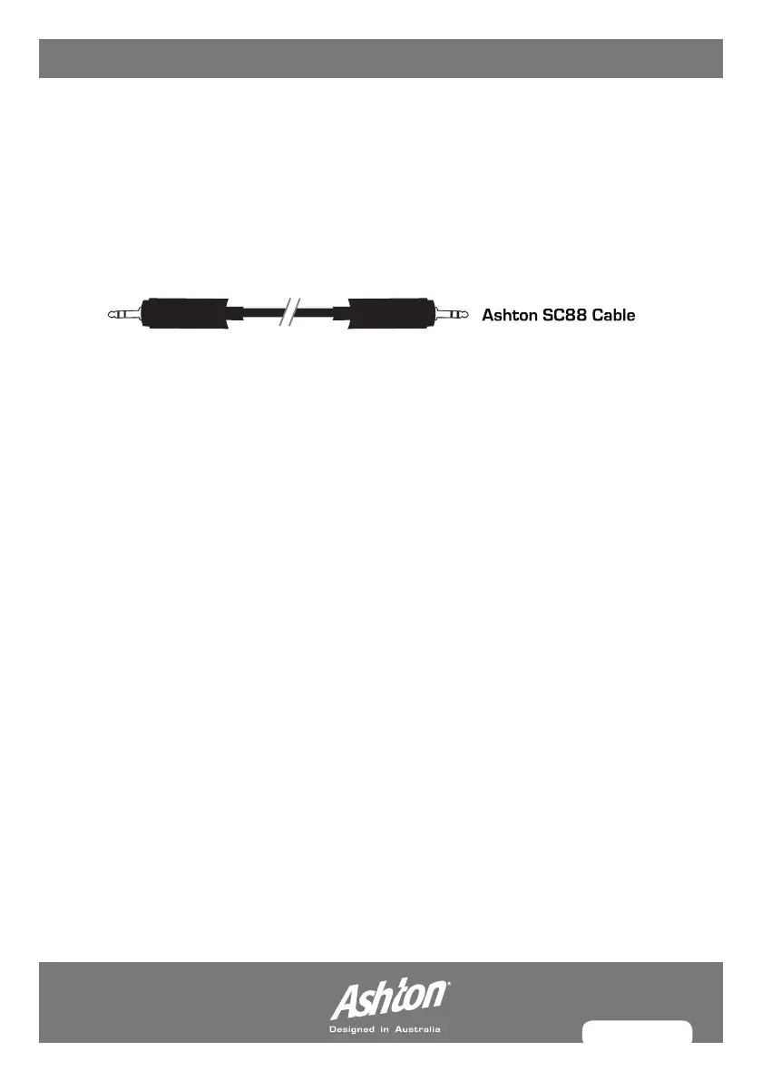 • Most MP3 players require a 1/8” stereo to 1/8” stereo cable. An Ashton SC88