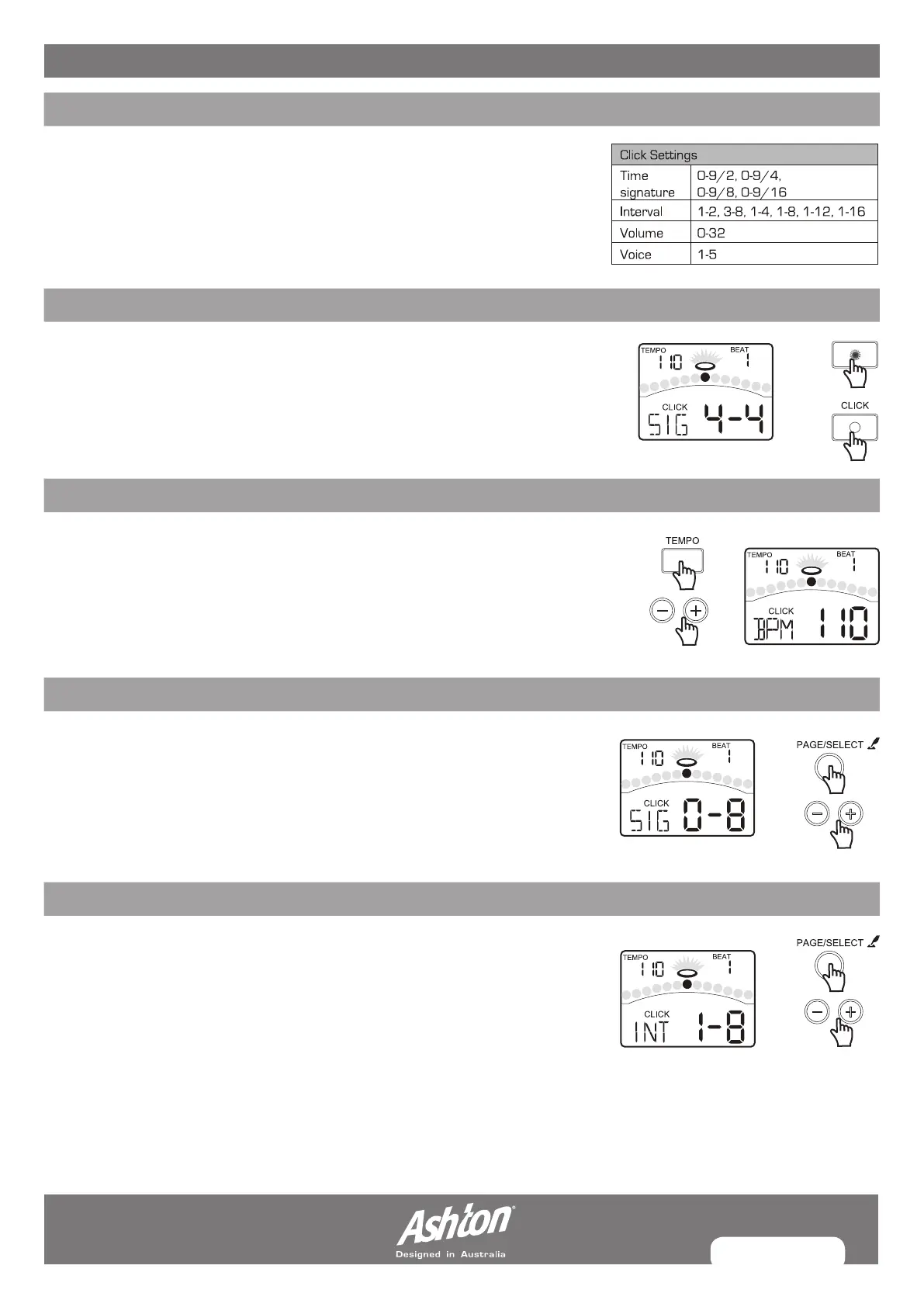 Press the [PAGE] button, select Click Interval page. The display will show: