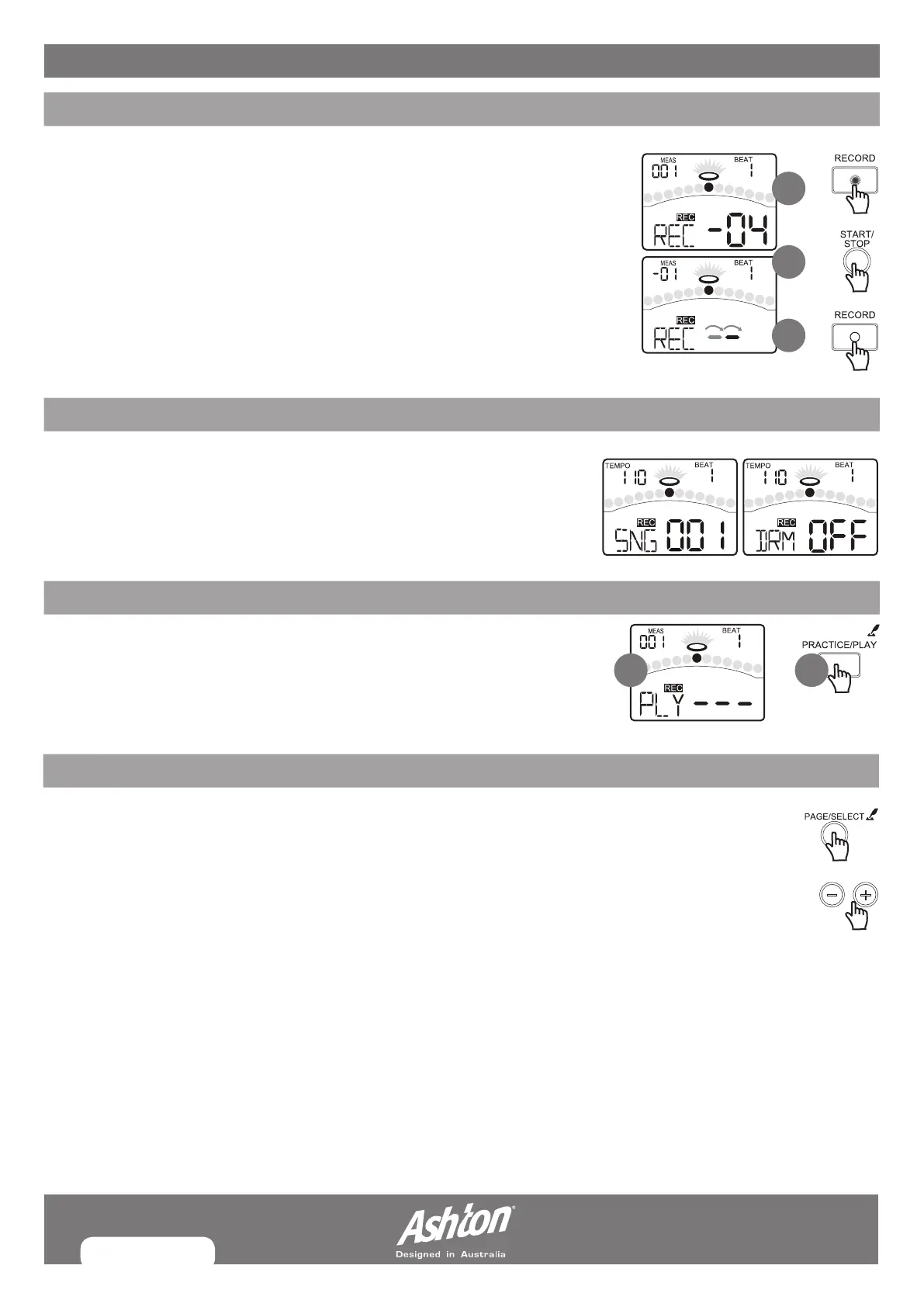 parameters (Song Number and Drum off) before start to record.
