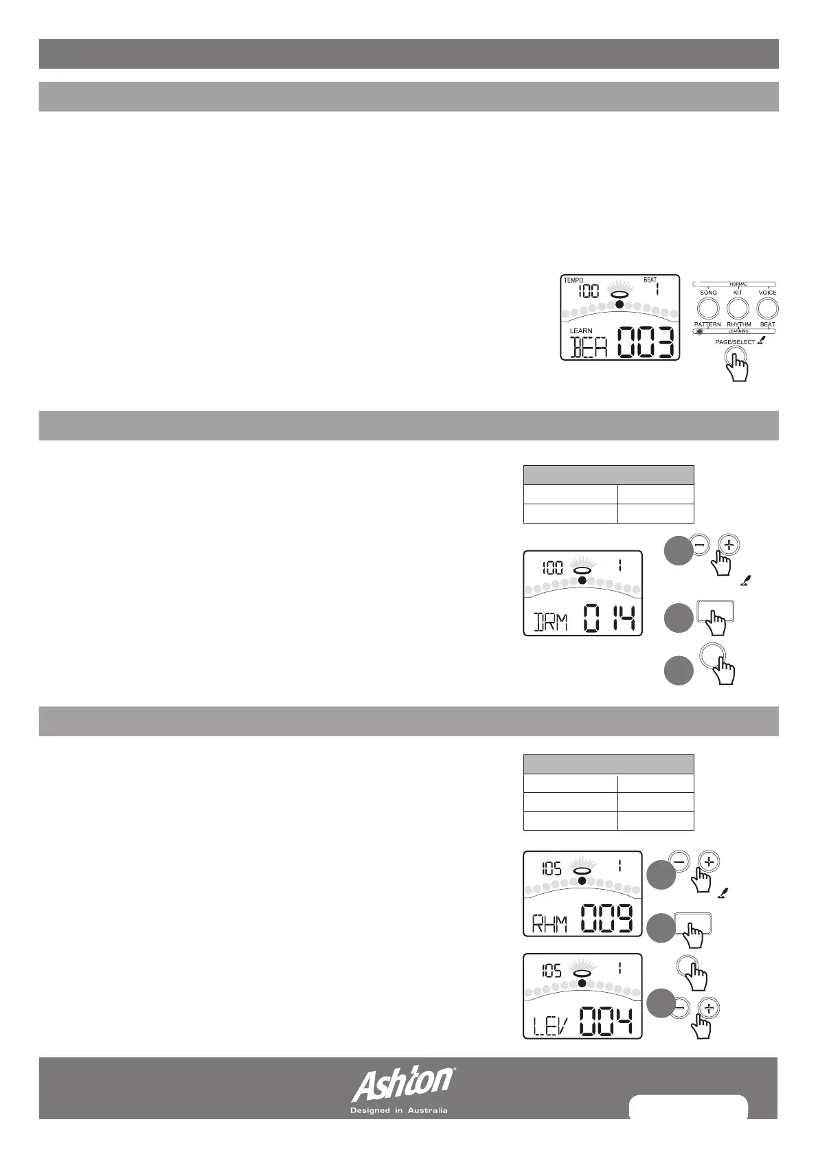 1. Press the [–] or [+] button to select the rhythm.