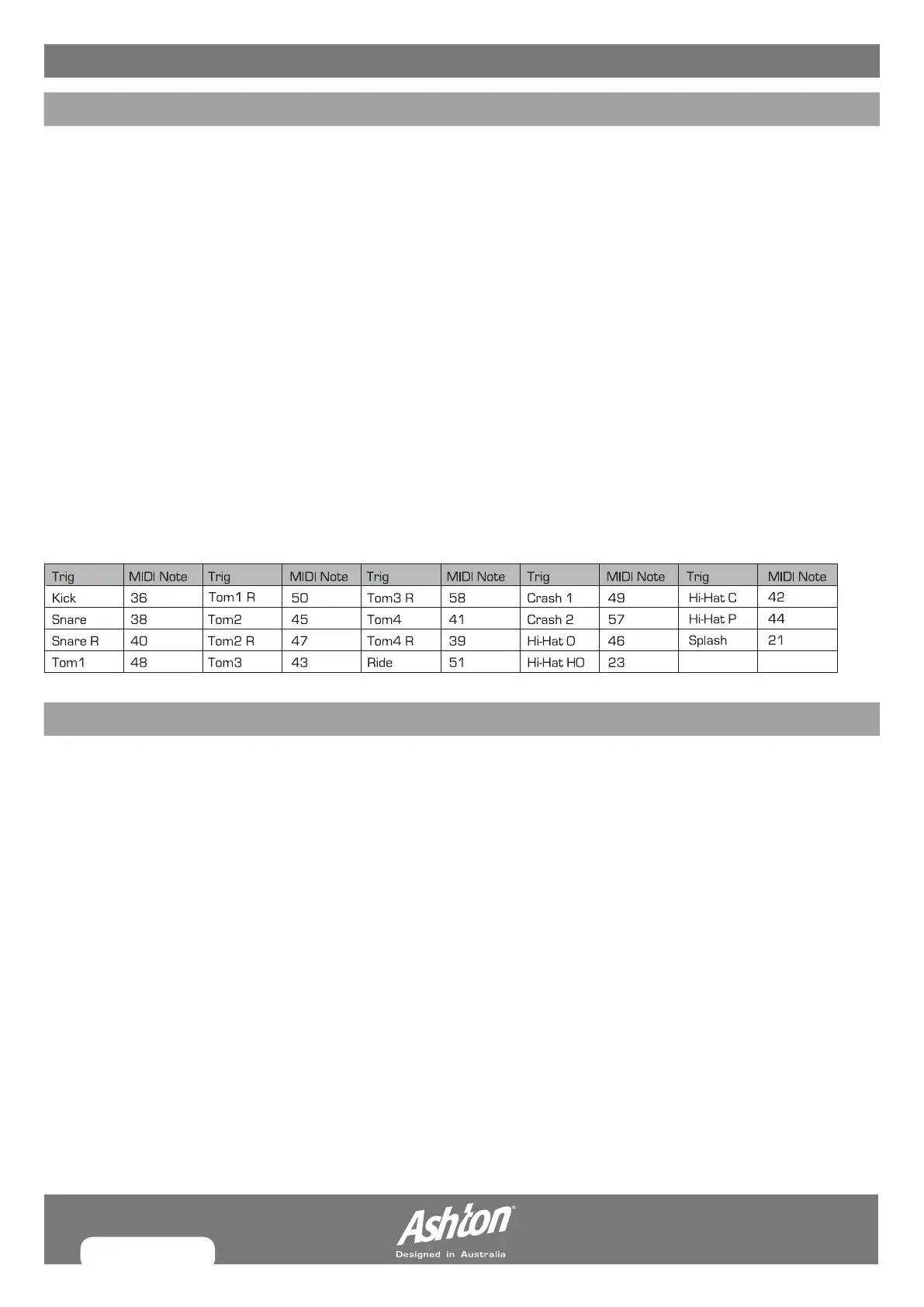 The digital drum transmission channel for the drum kit is fixed to Channel 10. It will output MIDI data generated by the triggers when