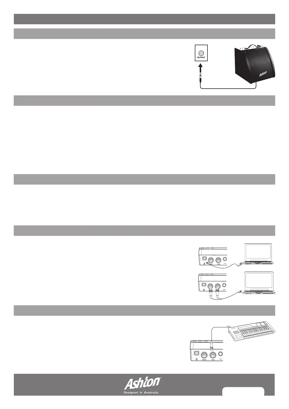 Note: When you want to play your kit through an amplifier (Ashton DA30