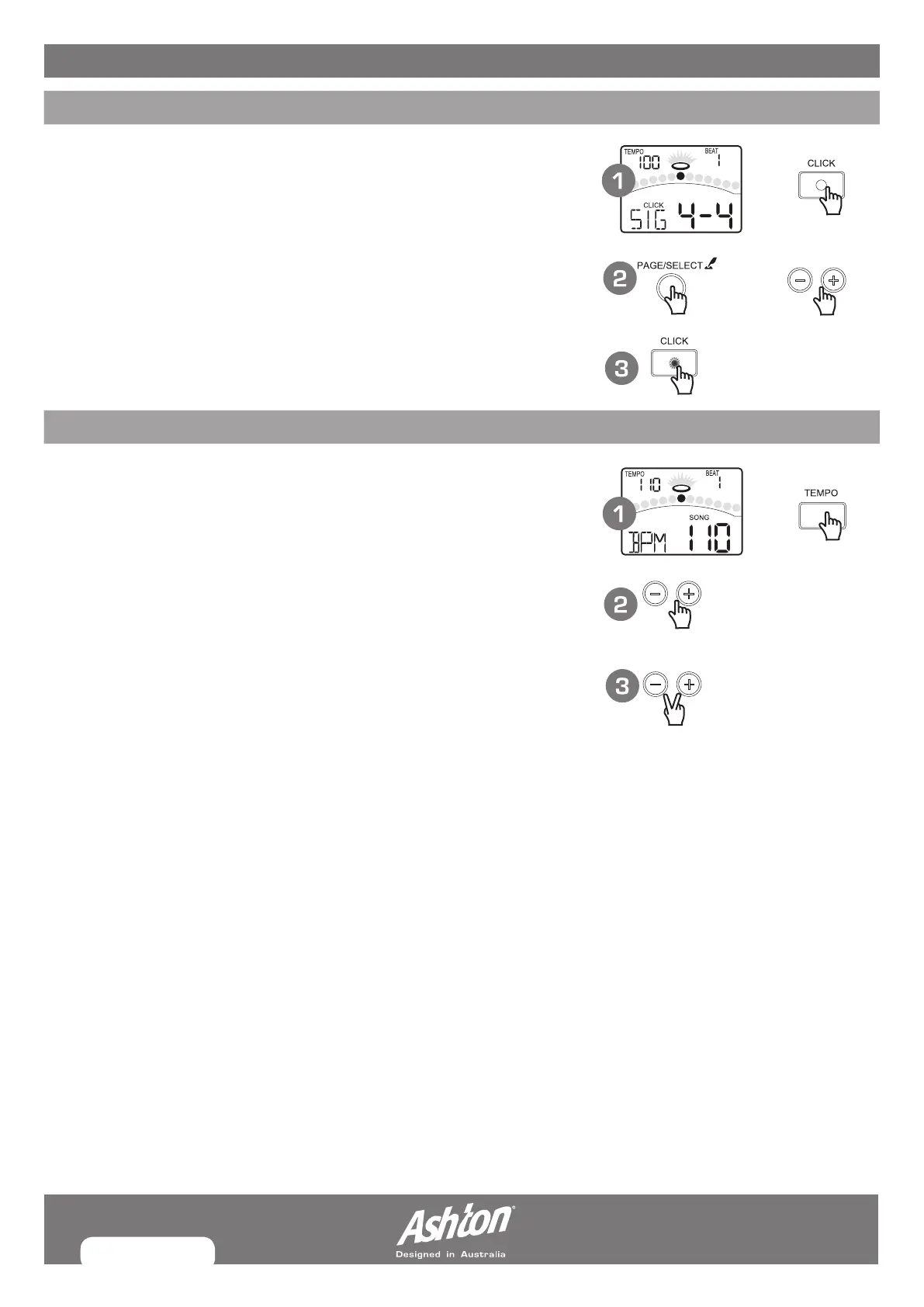 3. Press both [–] and [+] buttons at the same time, reset the current tempo to