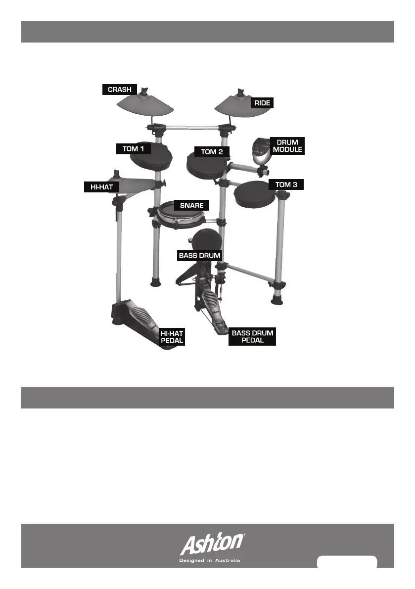 NOTE: DO NOT CONNECT THE ELECTRONIC DRUM KIT TO A POWER UNIT UNTIL FULLY